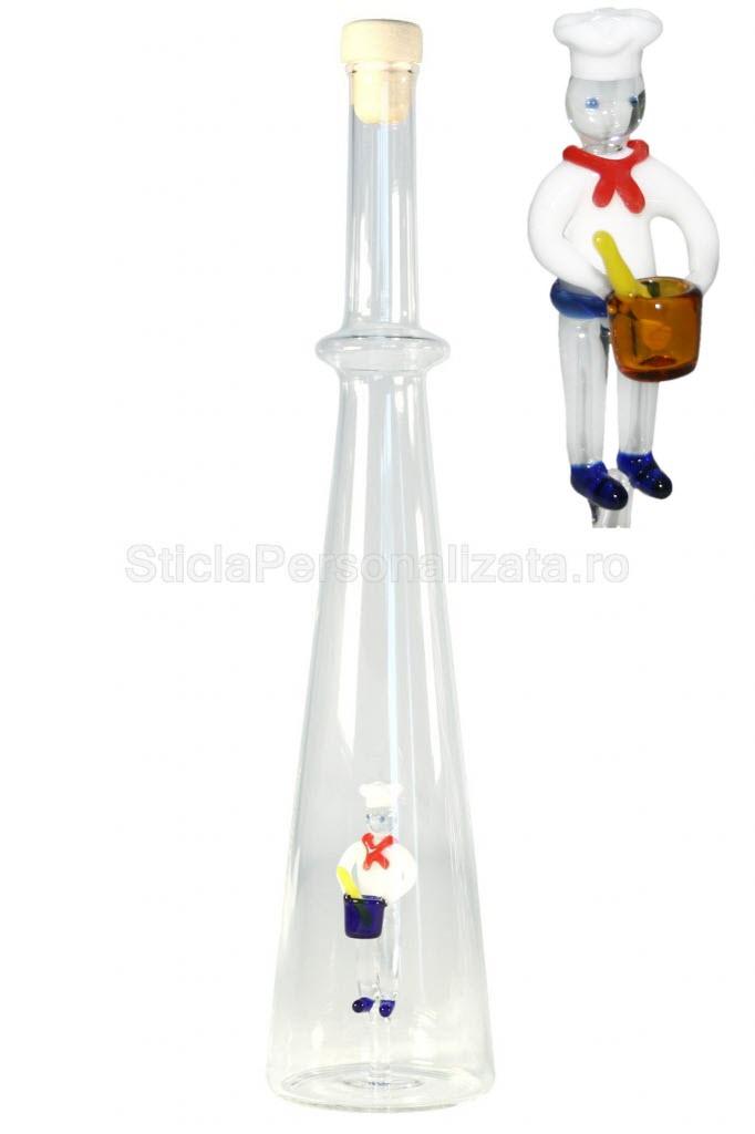 Pentru a onora meritele unui Master Chef, va recomandam sticla cu detaliu in forma de bucatar. Aceasta constituie o modalitate originala de a oferi un cadou celui ce va rasfata papilele gustative.