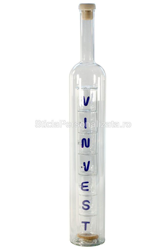 Nimeni nu poate nega stransa legatura dintre sticla si pahare. Prin urmare, noi va oferim o sticla cu pahare incluse in interiorul sau, pentru a le avea intotdeauna aproape. Paharele contin in interior un detaliu in forma unei litere, in functie de mesajul ce se doreste a fi transmis.