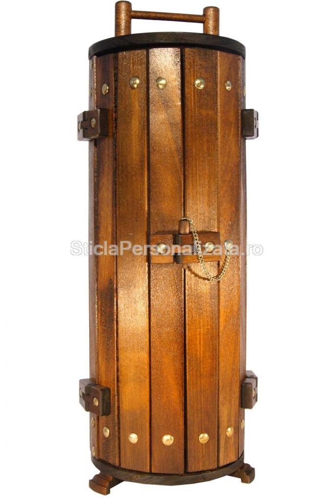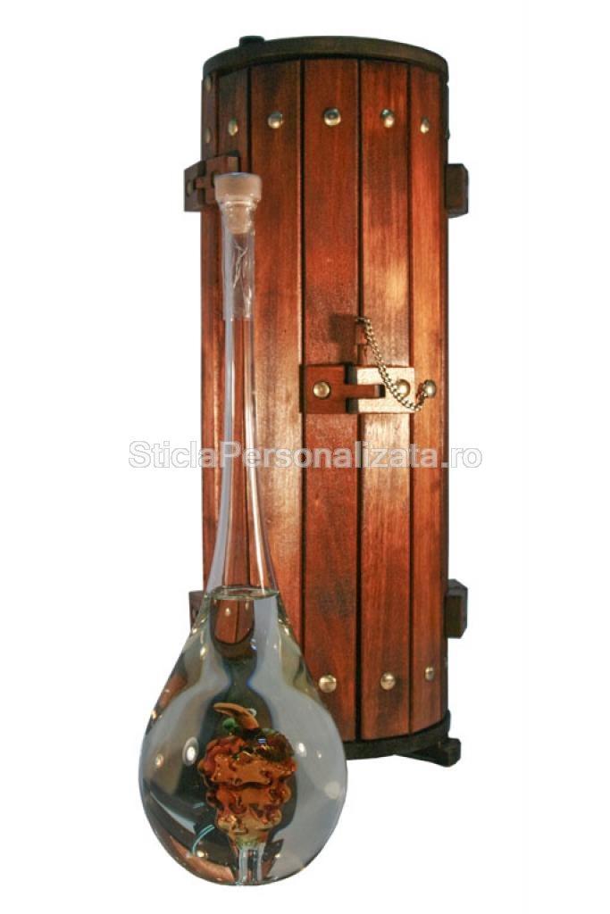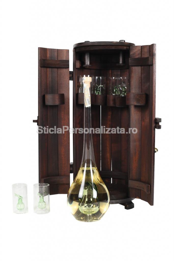 Barul mic reprezinta o imbinare incantatoare intre lemn si sticla, constituind o mica opera de arta, un adevarat cadou de colectie. Produsul se prezinta in forma cilindrica, fiind prevazut cu o sticla si un set alcatuit din 6 paharele pentru degustare.