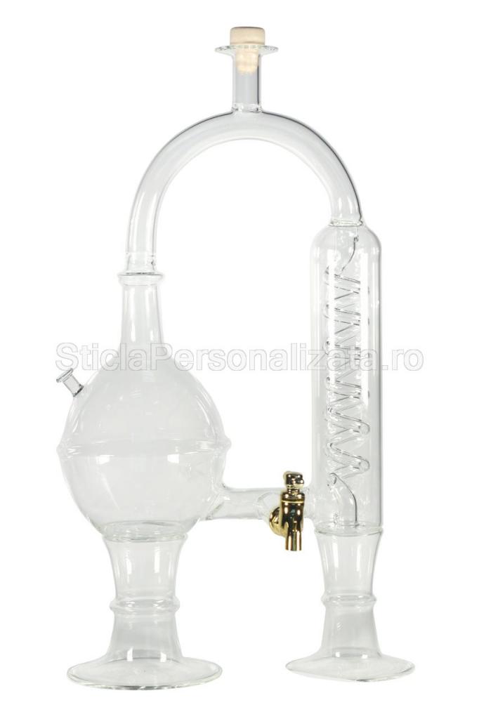 Pentru prietenul a carei mare pasiune este obtinerea distilatelor din fructe recomandam un cadou inspirat, deosebit si elegant in acelasi timp: sticla in forma de distilator, prevazuta cu un robinet pentru o servire rapida a bauturii.