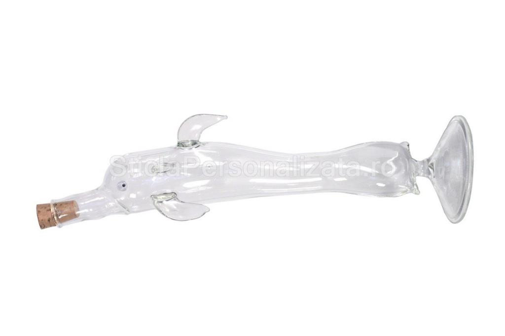Delfinul este cel mai inteligent mamifer marin, fiind un simbol al inteligentei cunoscut in intreaga lume. Noi va oferim o sticla in forma unui delfin in miniatura, confectionata din sticla termorezistenta si fiind prevazuta cu un dop inclus in pret.