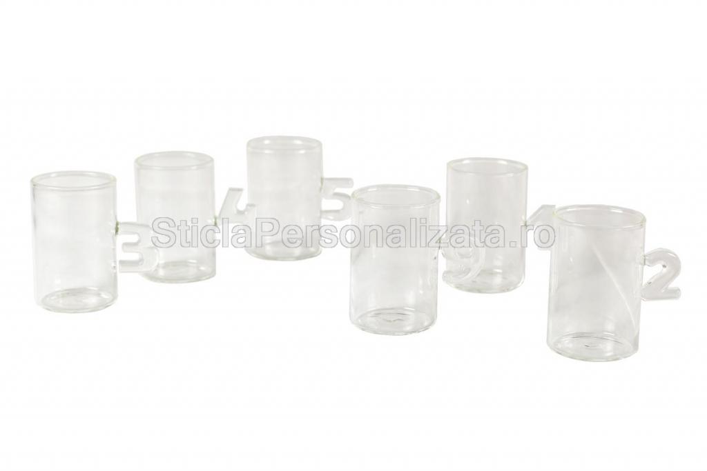 Simpaticele pahare pentru servirea distilatelor din fructe sarbatoresc alaturi de dumneavoastra aniversarea zilei de nastere. Confectionate din sticla termorezistenta, acestea sunt prevazute cu manere in forma de cifre. Nu ezitati sa ne contactati pentru a va comanda cifrele dorite.