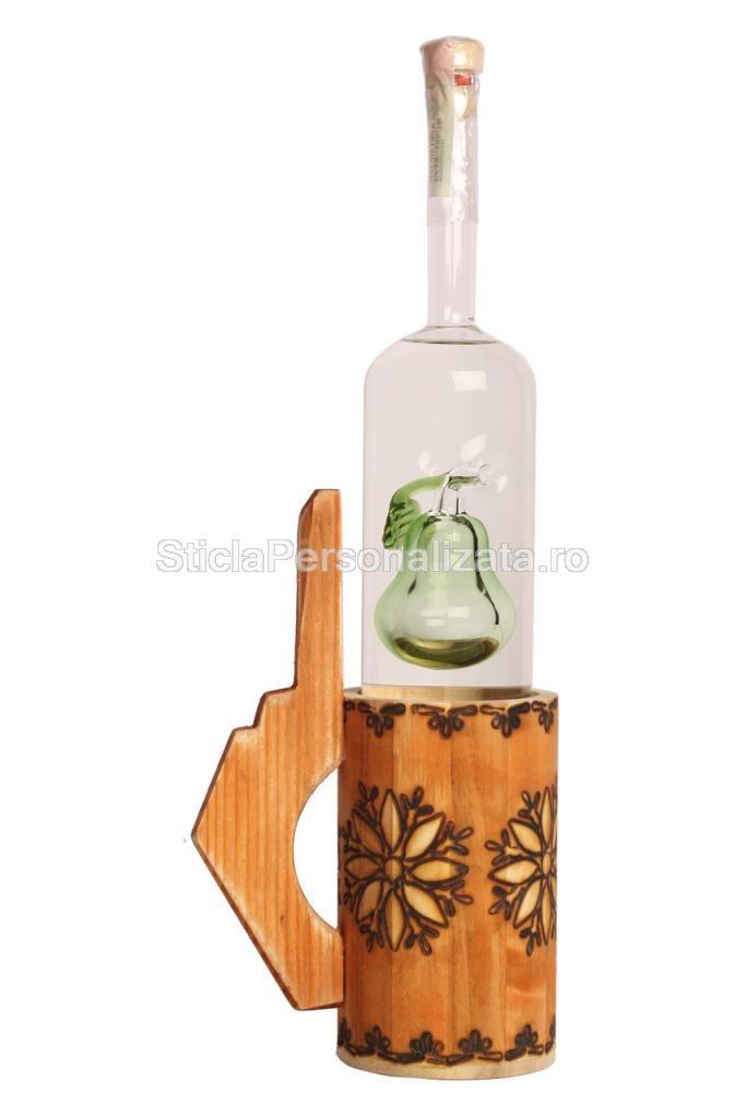 Va prezentam un cadou ideal pentru iubitorii folclorului romanesc: caucul din lemn cu incantatoare motive florale. Acesta este insotit de o sticla cu detaliu interior in forma de para.