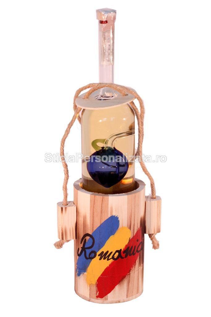 Aveti planificat un concediu la prietenii dumneavoastra din afara tarii? Cel mai potrivit cadou pentru aceasta ocazie este sticla cilindrica cu fruct interior, prezentata intr-un cauc traditional romanesc, pictat manual cu drapelul Romaniei.