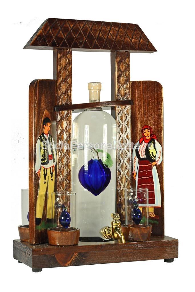 Poarta maramuresana se inalta falnic deasupra unei sticle cu detaliu interior in forma de pruna. Acest suport confectionat din lemn constituie un elogiu adus folclorului, fiind decorat cu 2 picturi ce intruchipeaza porturile traditional romanesti.