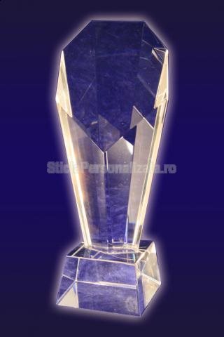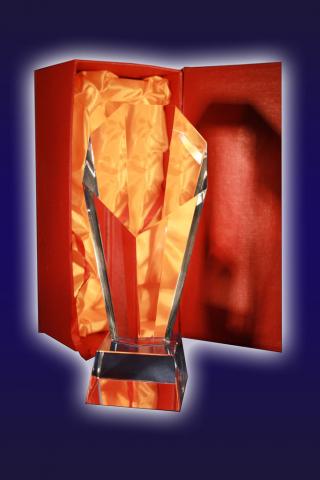 O idee incantatoare pentru un cadou tip corporate o reprezinta trofeul confectionat din sticla, cu dimensiunile de 8 cm lungime si 18 cm inaltime.
