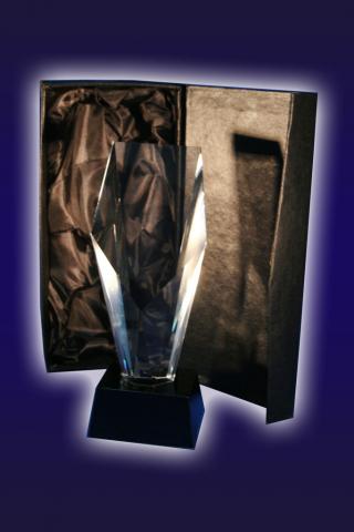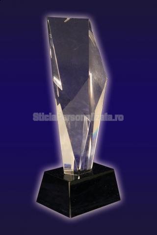 Va oferim un trofeu elegant, perfect pentru campioni! Finisajele acestuia sunt perfecte, dand nastere unui produs incantator. Acesta este prevazut cu o cutie de prezentare tip cadou. Produsul este confectionat din sticla, avand dimensiunile de 8 cm lungime si 18 cm inaltime.